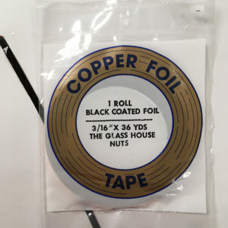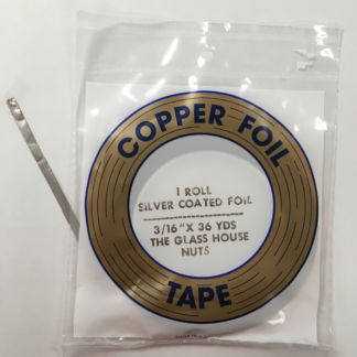 Used instead of lead came in most lamp shade work, and on many other projects. First you wrap the copper foil around a piece of cut and ground glass. The copper foil is temporarily held in place by its adhesive backing. After you have wrapped and fitted together several pieces, you run a continuous bead of solder along all of the exposed copper. You then turn the work over and repeat the process on the reverse.