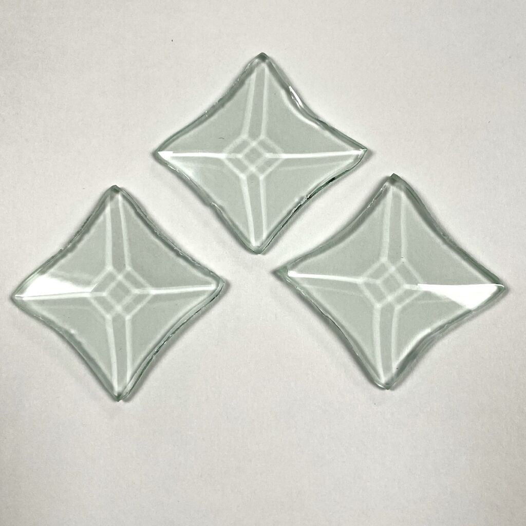 Clear Concave Star Bevel Glass Shape measures approximately 1 3/4″ from point to point.