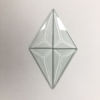 Clear Quarter of 3″ x 5″ Diamond Bevel Glass Set of Left and Right bevels. Straight sides measure 1 1/2″ x 2 1/2″. Put 2 sets together to make a 3″ x 5″ Diamond. Top Quality. Fun bevels to play with for interesting design elements.