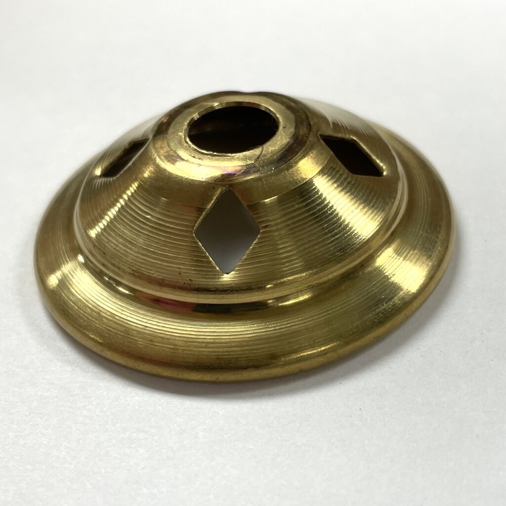 Brass Vented Vase Cap 2″ finished off the top of stained glass lamps. It actually measures 1 15/16″.