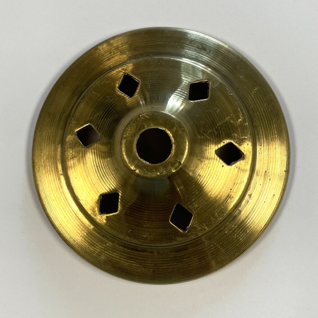 Brass Vented Vase Cap 3″ finished off the top of stained glass lamps.