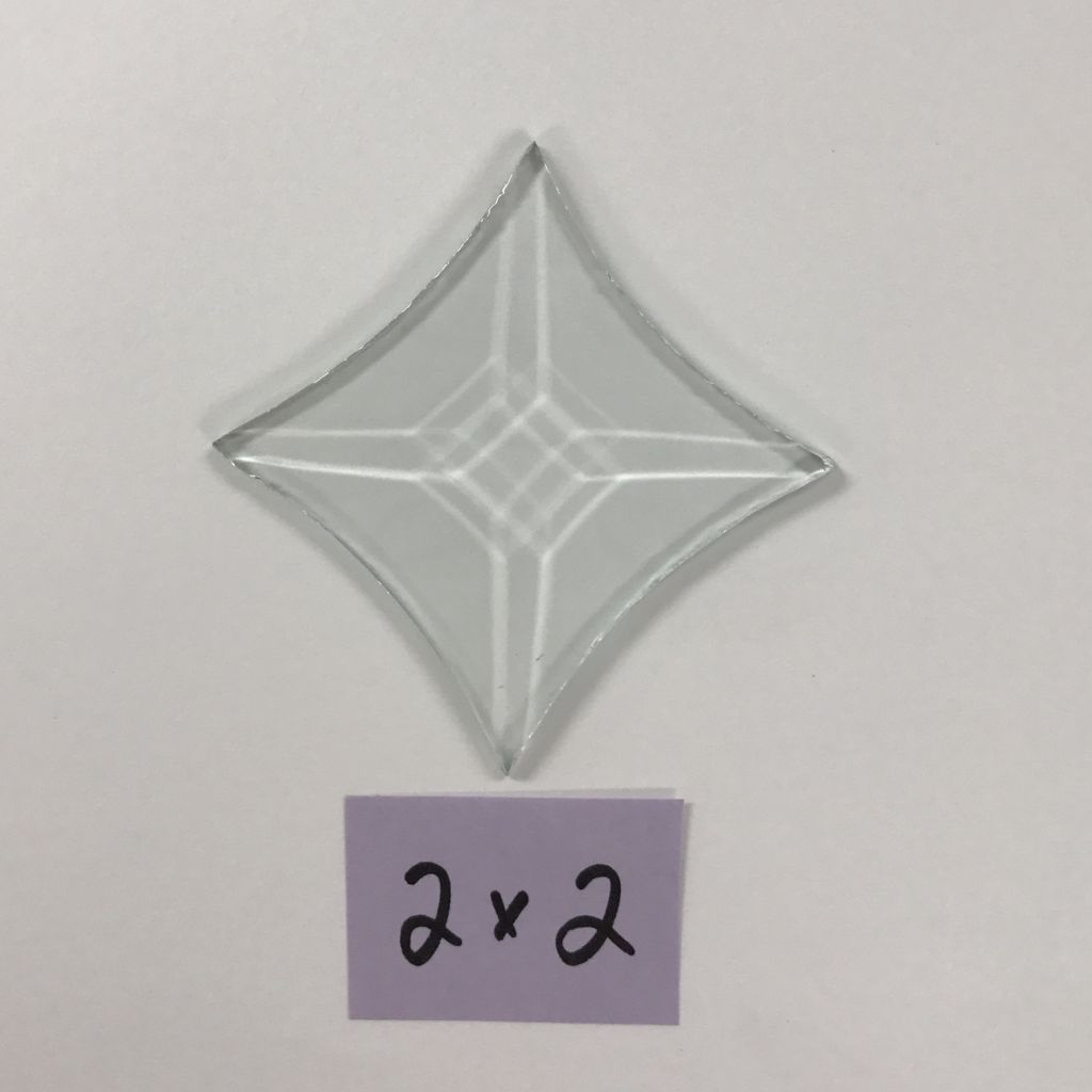 Clear Concave Square Bevel Glass Shape measures approximately 2″ x 2″ from point to point and is top quality.