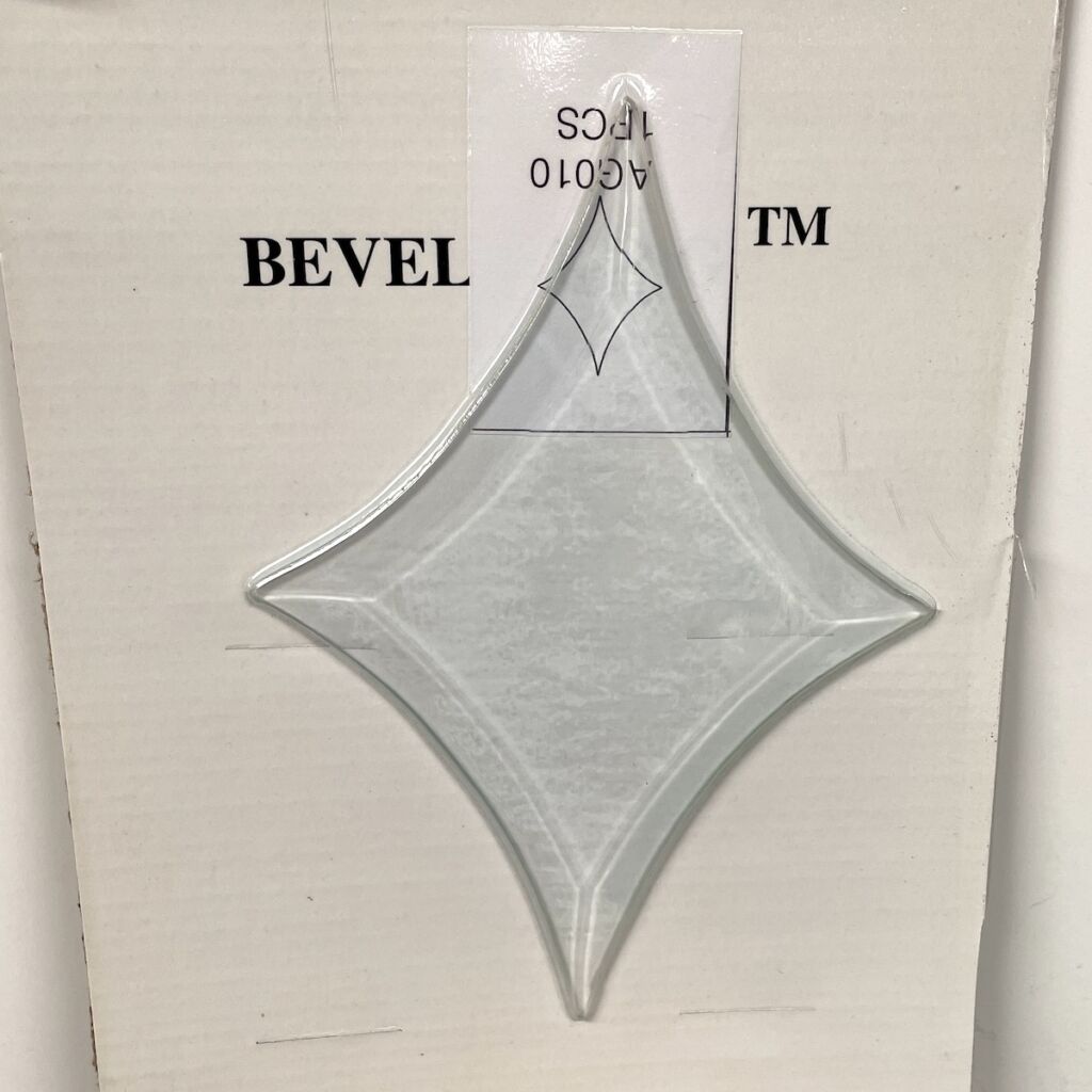 Clear Concave/Square Bevel Glass Shape measures approximately 5 1/4″ x 8 1/4″ from point to point, limited stock.