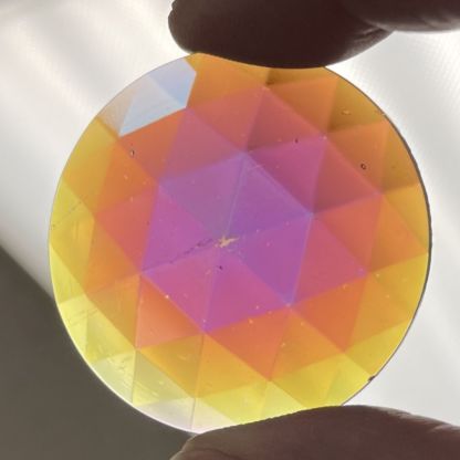 This 40mm (1 1/2″) Round Faceted Jewel has a Amethyst base and is very eye-catching with it’s dichroic coating.