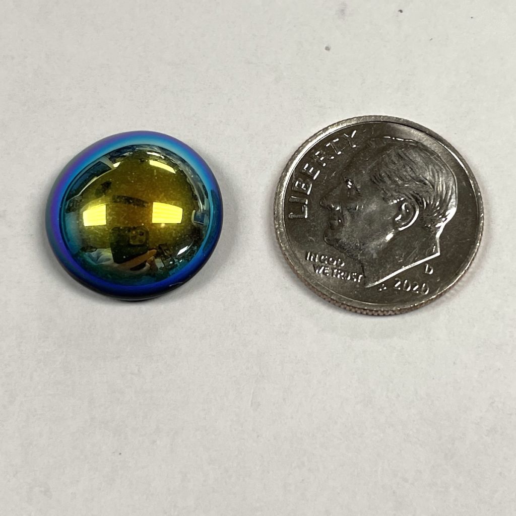 This 15mm(9/16″) Smooth Round Jewel has a Black Opal base and is very eye-catching with it’s dichroic coating.