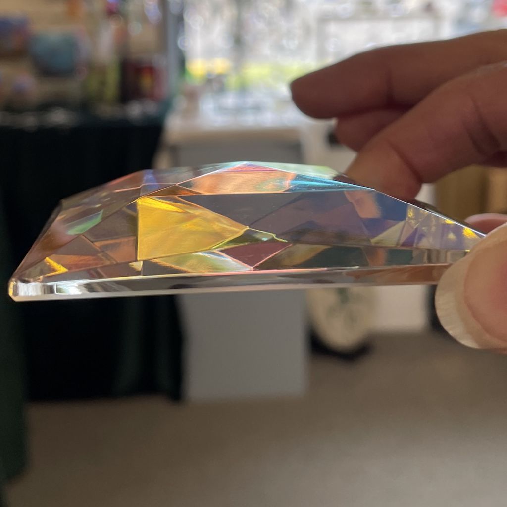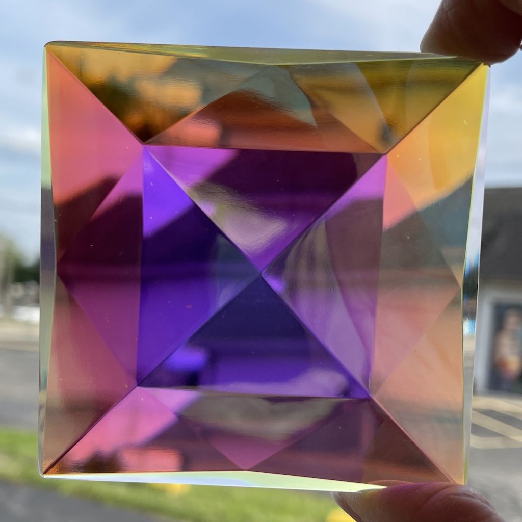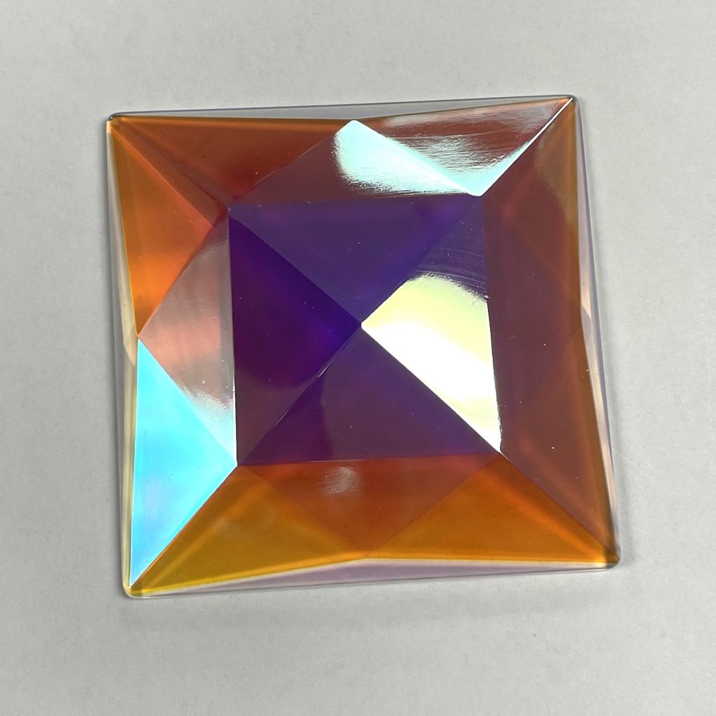 This 75mm (2 15/16″) Square Jewel has a clear base and is very eye-catching with it’s dichroic coating.