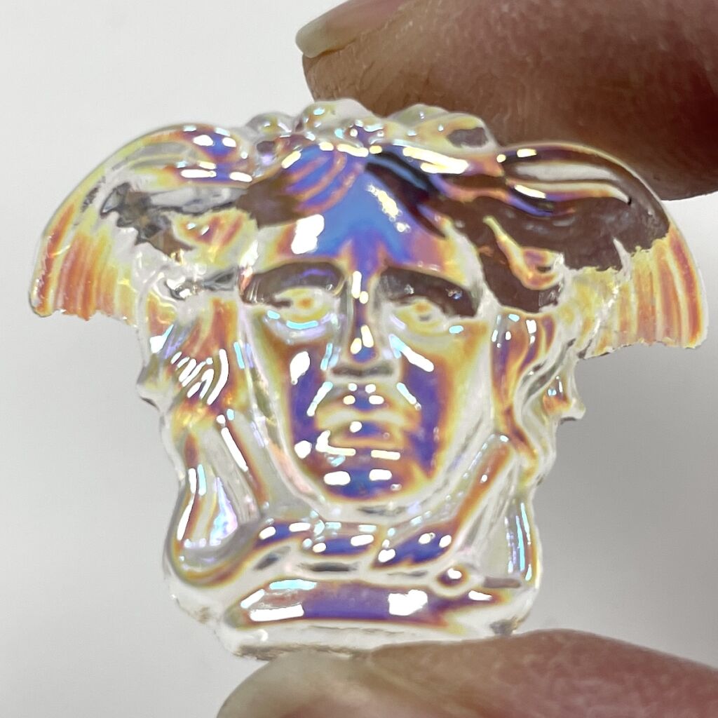 These are real Dichroic Coated glass Jewels with the front face itself coated, not a thin piece of dichroic laminated to the back side. These real Dichroic coated treasures will catch the light differently with each facet or textured detail of the jewel. It is hard to describe the stunning effect. Each jewel will have variations of color which gives them a dynamic look, changing with light angles. The edge thickness can also vary slightly.
