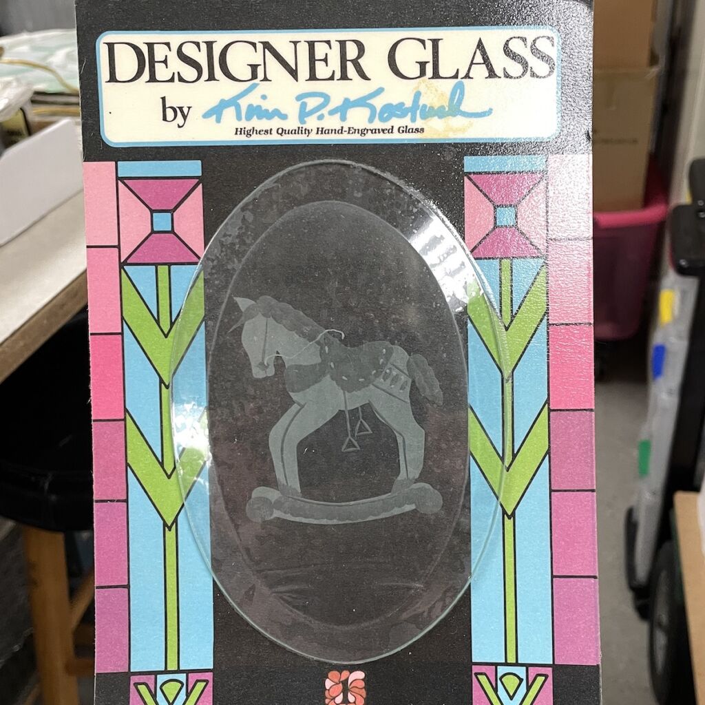 Studio One Clear Oval bevel with an Engraved and Sandblasted design in the center is very unique. It measures approx. 4″ x 6″. Makes a great centerpiece! Limited Stock