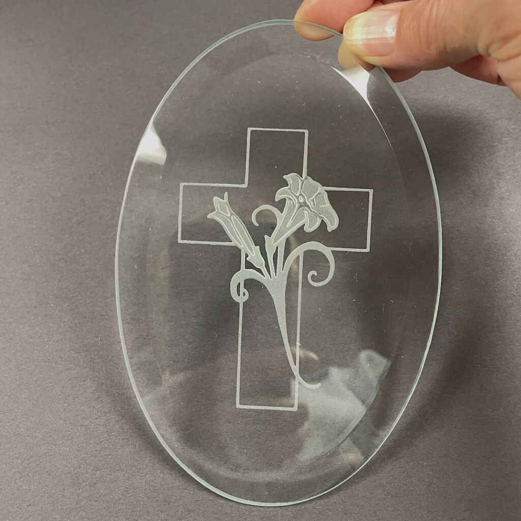 Engraved Clear Oval Bevel – Cross w/ Lily #613