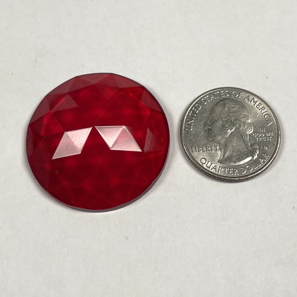 35mm (1 3/8″) Round Faceted Jewel Red. First Quality, made in Germany.