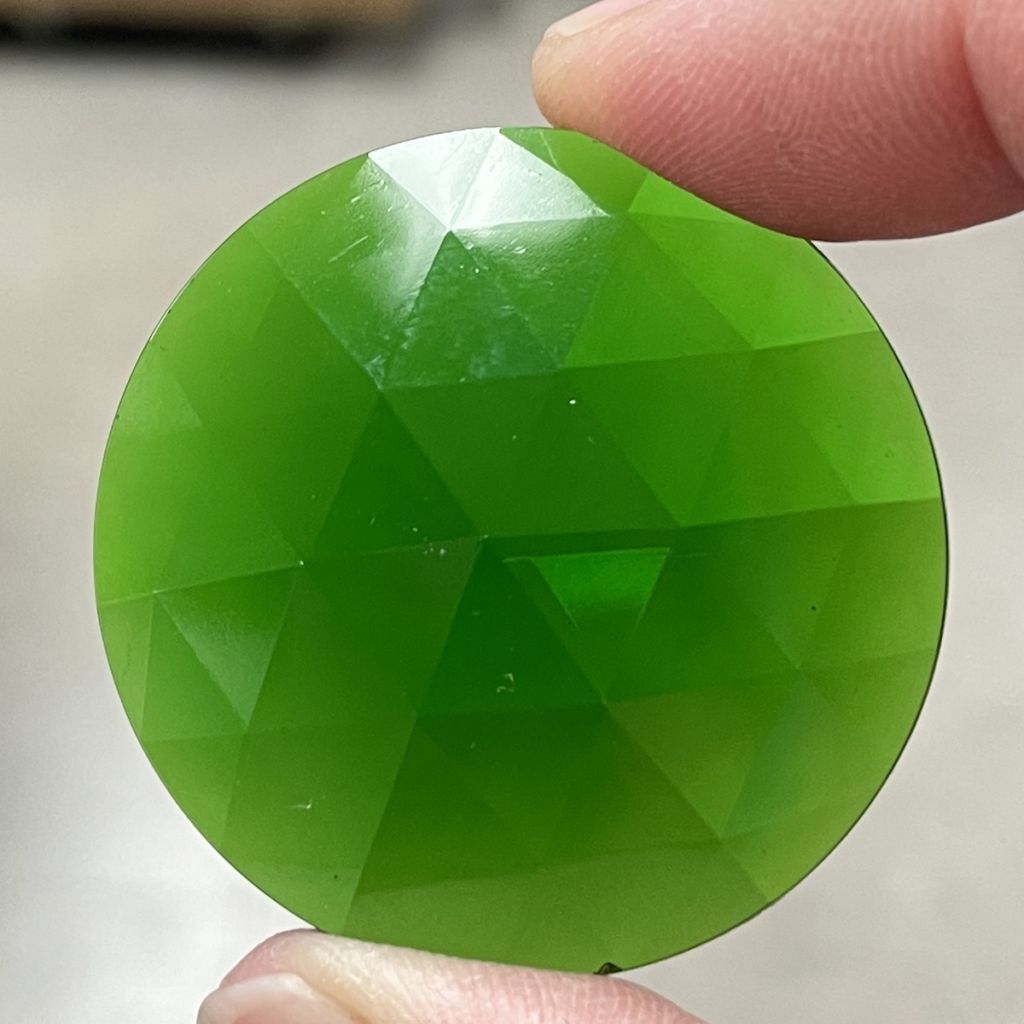 40mm (1 9/16″) Round Faceted Jewel Green. These jewels are first quality and made in Germany.