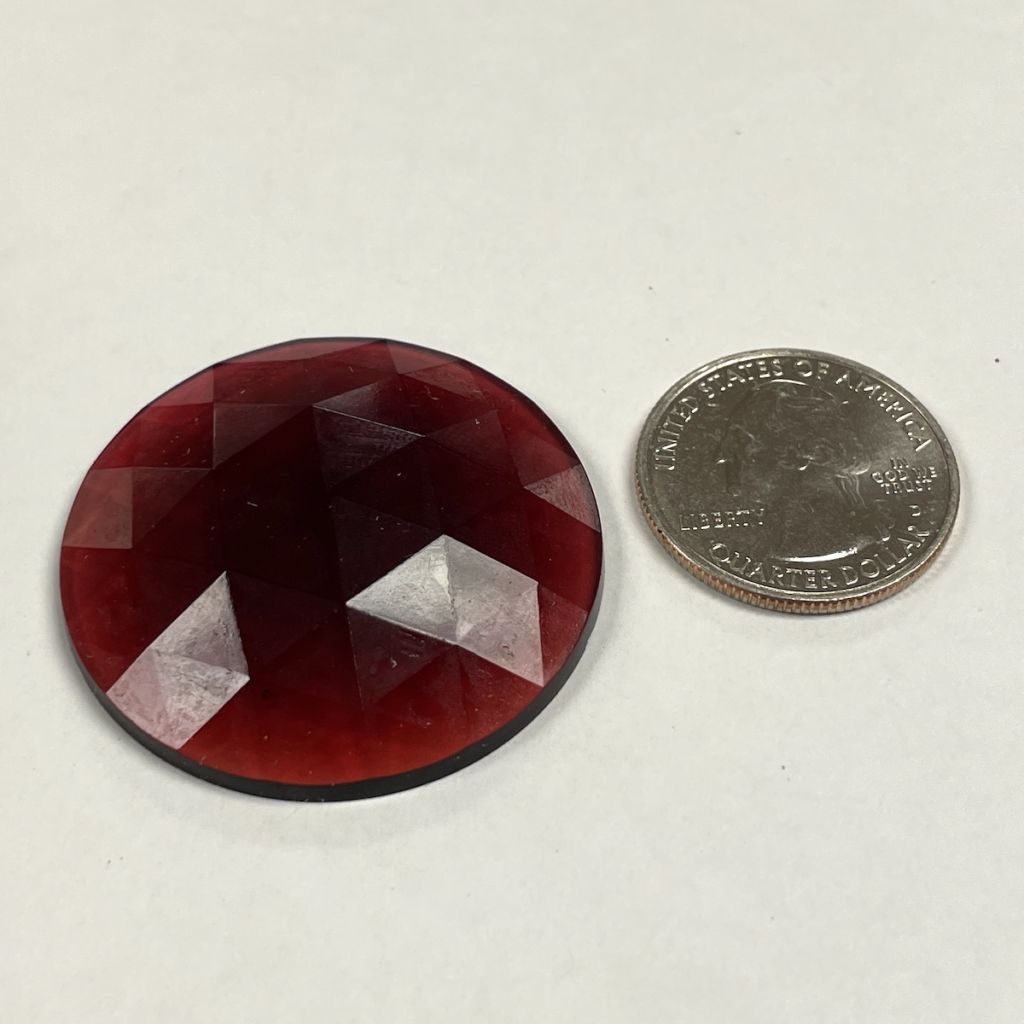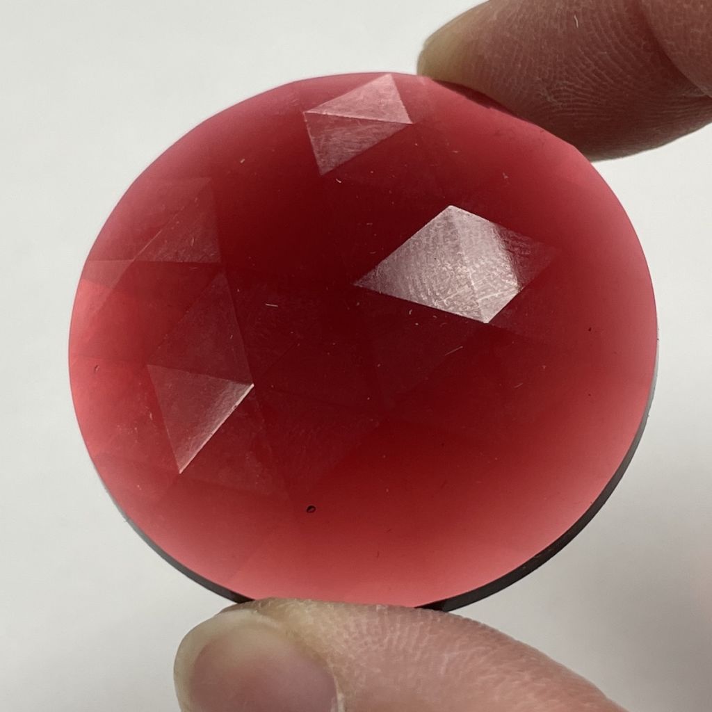 40mm (1 9/16″) Round Faceted Jewel Cranberry Pink. These jewels are first quality and made in Germany.