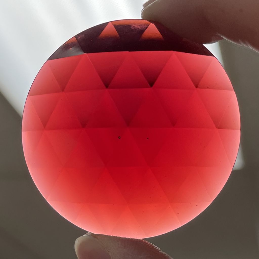 50mm (2″) Round Faceted Jewel Cranberry Gold Pink. These jewels are first quality and made in Germany.