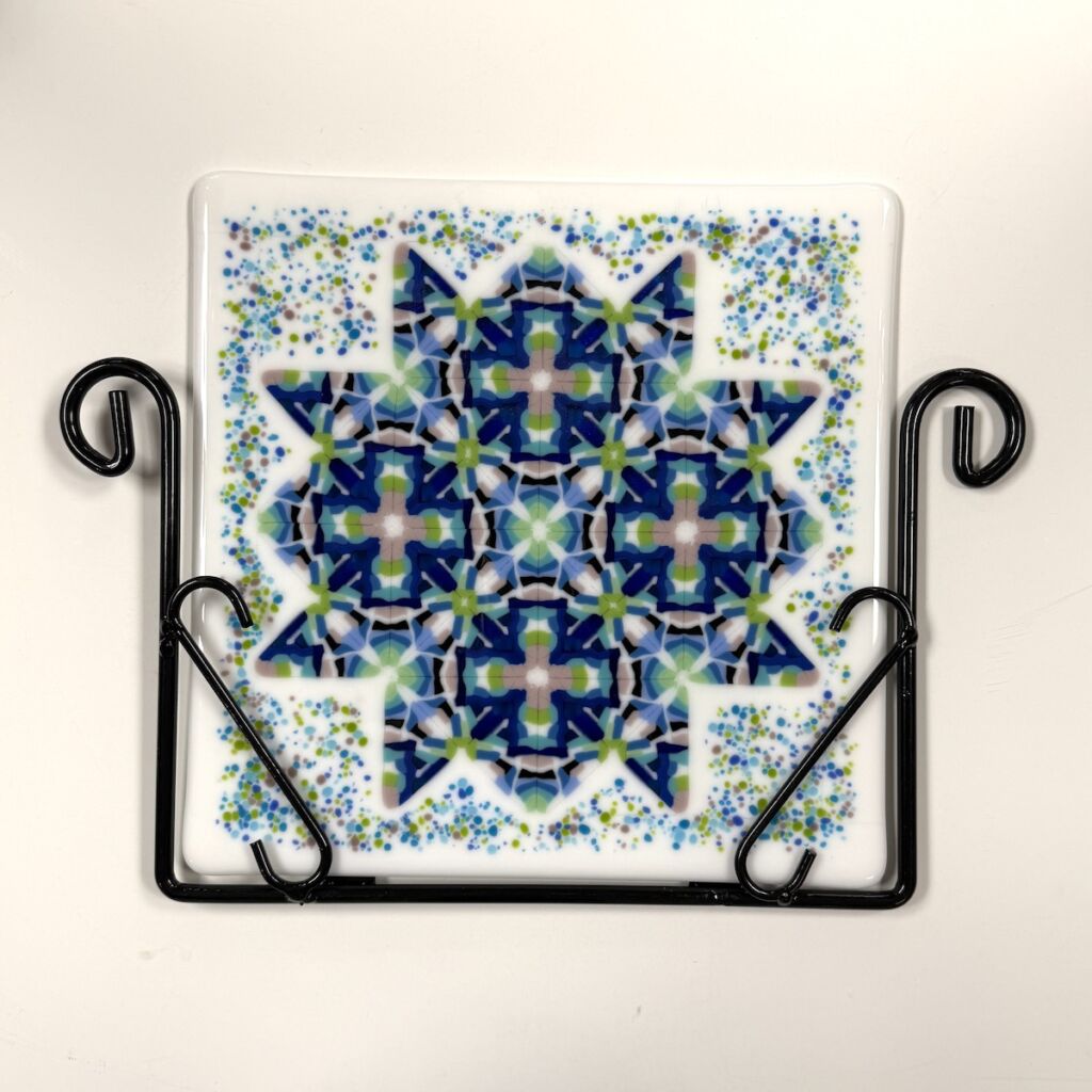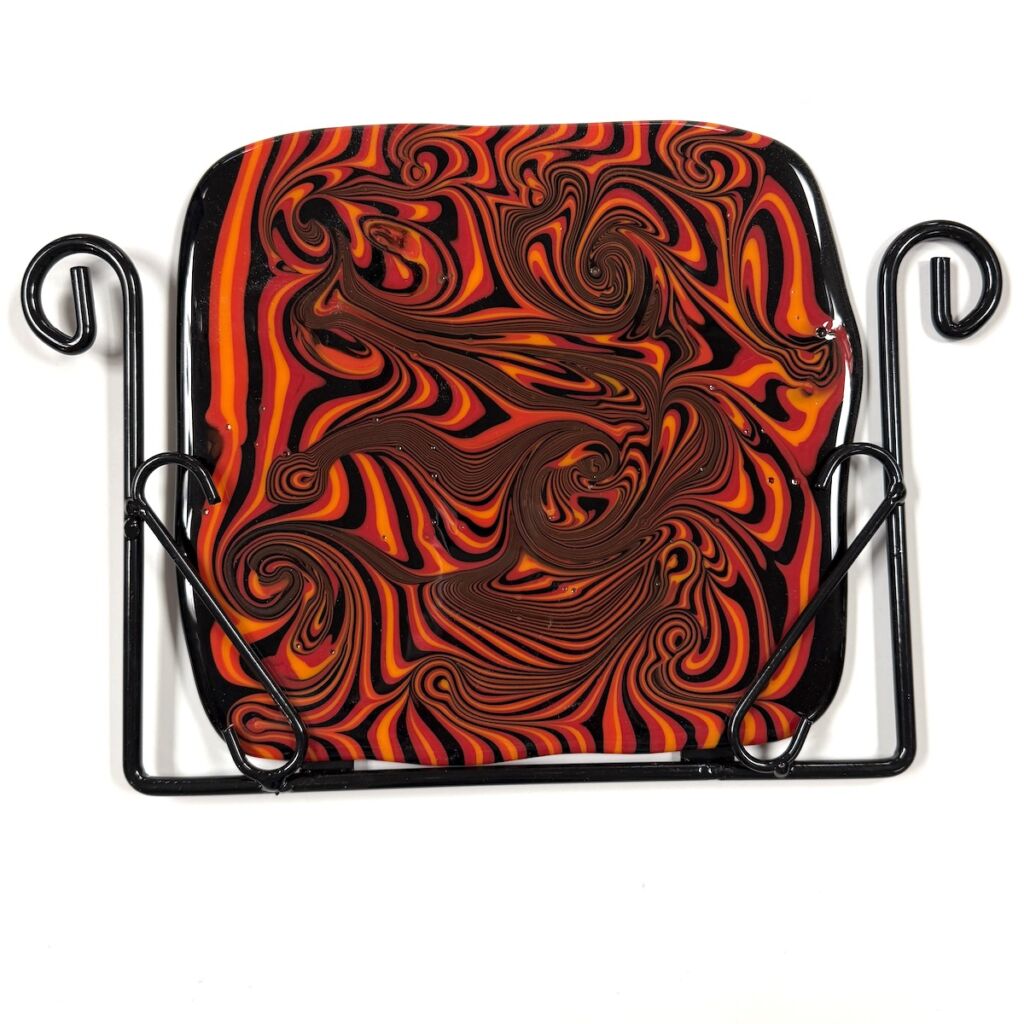 Jazz up your garden with your own Fused or Stained Glass Panel. This is a wall mount frame that will allow glass, less than 1/4″ thick and 10 1/2″ wide, to slide into and show off your masterpiece. Powder coated for outdoor durability.