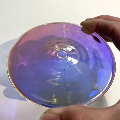 These are real Dichroic Coated glass Rondels with the front face itself coated, not a thin piece of dichroic laminated to the back side. These real Dichroic coated treasures will catch the light differently with each facet or textured detail of the jewel. It is hard to describe the stunning effect. Each jewel will have variations of color which gives them a dynamic look, changing with light angles. The edge thickness can also vary slightly, the small ones at times slightly less than 1/8″ and the larger jumbo jewels running a little thicker at times.