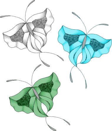 You get three butterflies – clear, sapphire and green. The glue chip effect adds dimension and sparkle. Each butterfly is 3¼ x 4¼”, twelve beveled pieces in the set.