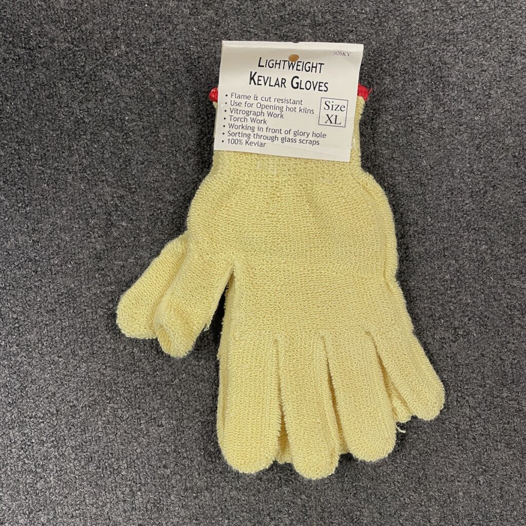 Lightweight Kevlar Gloves are flame and cut resistant. Use for opening hot kilns, Vitrograph work or working with the Torch. Can also be used for sorting glass scraps. 100% Kevlar. Limited Stock.
