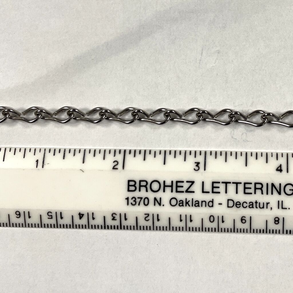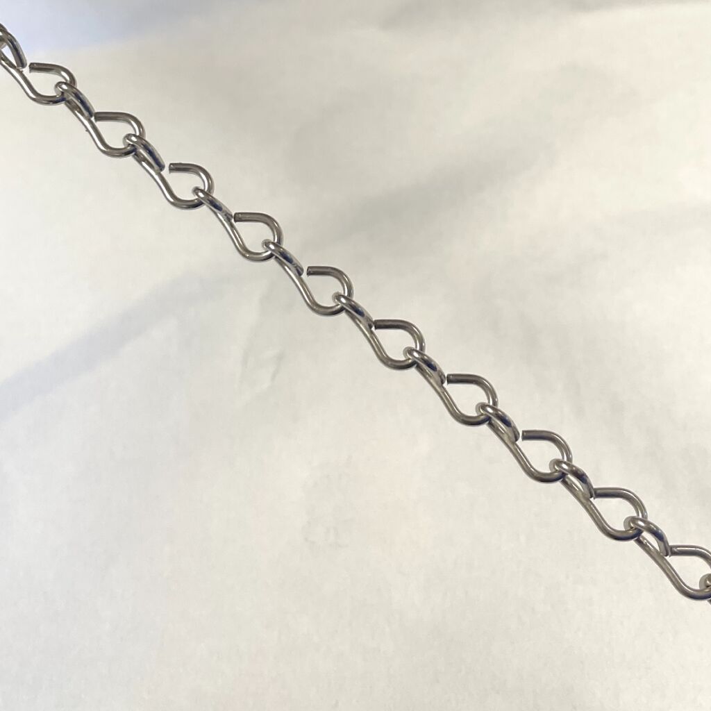 Nickel 18 gauge Chain is great for hanging projects. Sold by the foot and will be in one length.