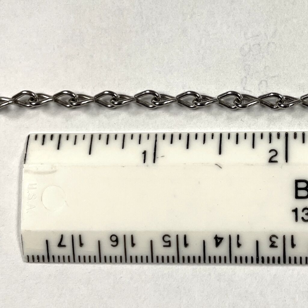 Nickel 20 gauge Chain is great for hanging projects. Sold by the foot and will be in one length.