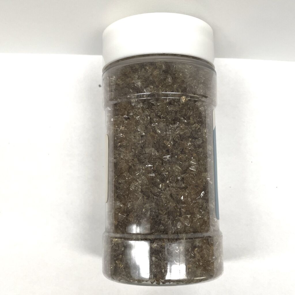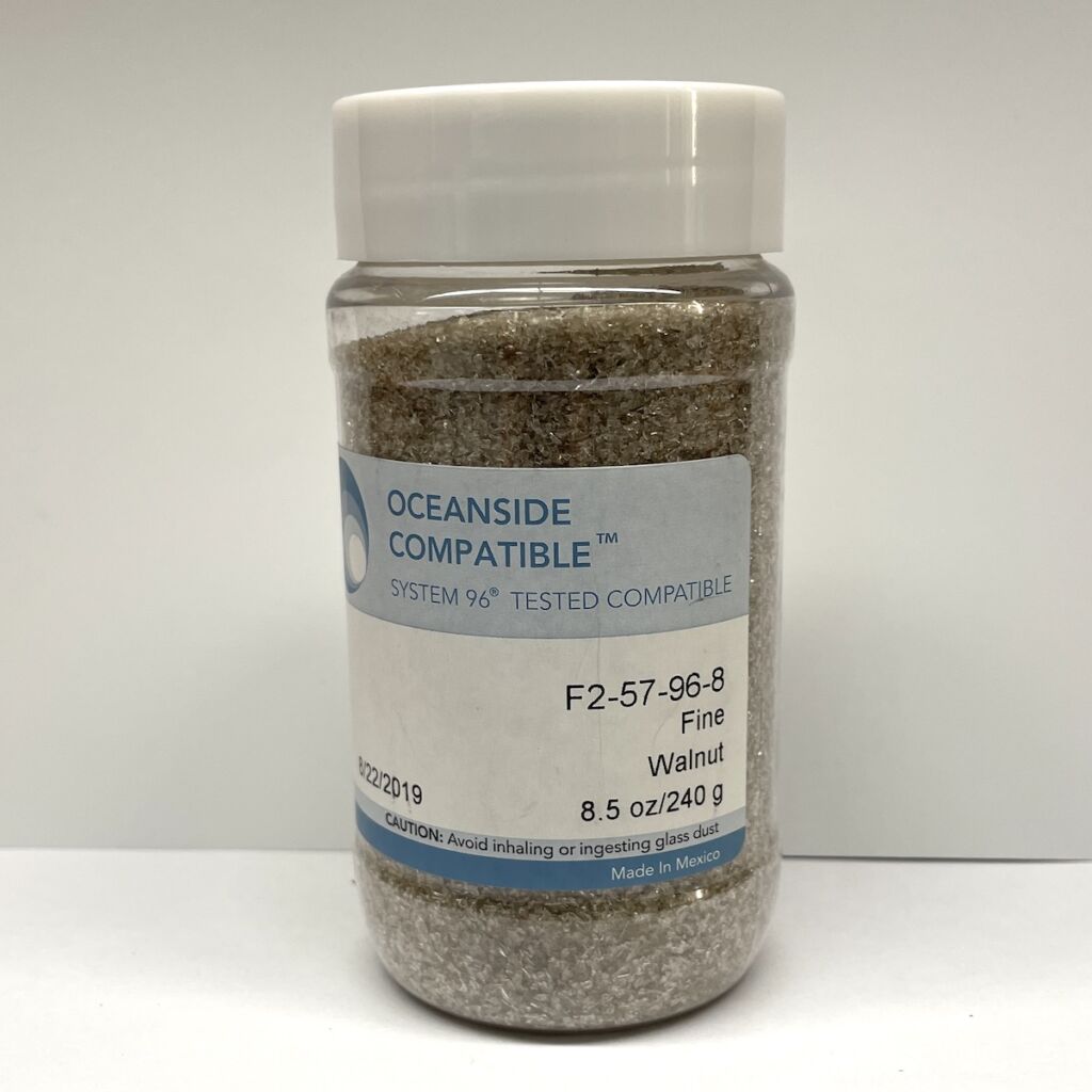 Crushed glass Frit is made from glass that is recycled from the production of Oceanside Compatible fusible sheet glass. All salvaged edges used to make Frit are separated from the other glass at the time of production to ensure that purity and expansion tolerance standards for Frit are consistently met. Fine and Powder grades are magnetically cleaned of metal residues.  Available in Powder, Fine, and Medium Frit, 8.5 oz Jar.