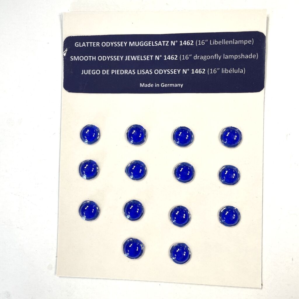 Odyssey Smooth Round Blue Jewel Set for Odyssey Dragonfly Lamp shade. Made in Germany. Includes 14) 12mm jewels. Odyssey jewels are hand cast one at a time, just like the original Tiffany jewels were made.