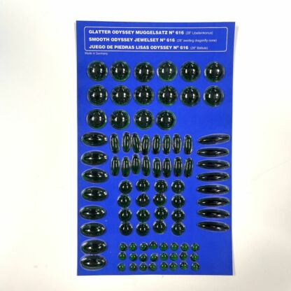Odyssey Smooth Turquoise 88 Jewel Set for 28″ Odyssey Swirling Dragonfly Lamp shade, made in Germany. Includes 24) 12mm round, 16) 20mm round, 16) 30mm round, 8) 38mm x 21mm oval, 16) 30mmx 13mm oval, and 8) 48mm x 13mm Oval Jewels . Odyssey jewels are hand cast one at a time, just like the original Tiffany jewels were. Internal bubbles and surface irregularities are recreated to give you the hand-made look of the originals. Because of the value of these jewels, your signature will be required when delivered.