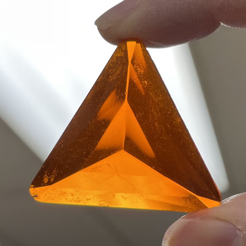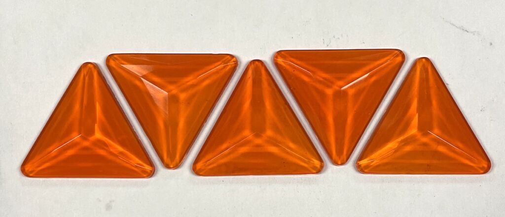 Nice 39 mm (1 1/2″) Faceted Orange Triangle Jewel. Limited stock.
