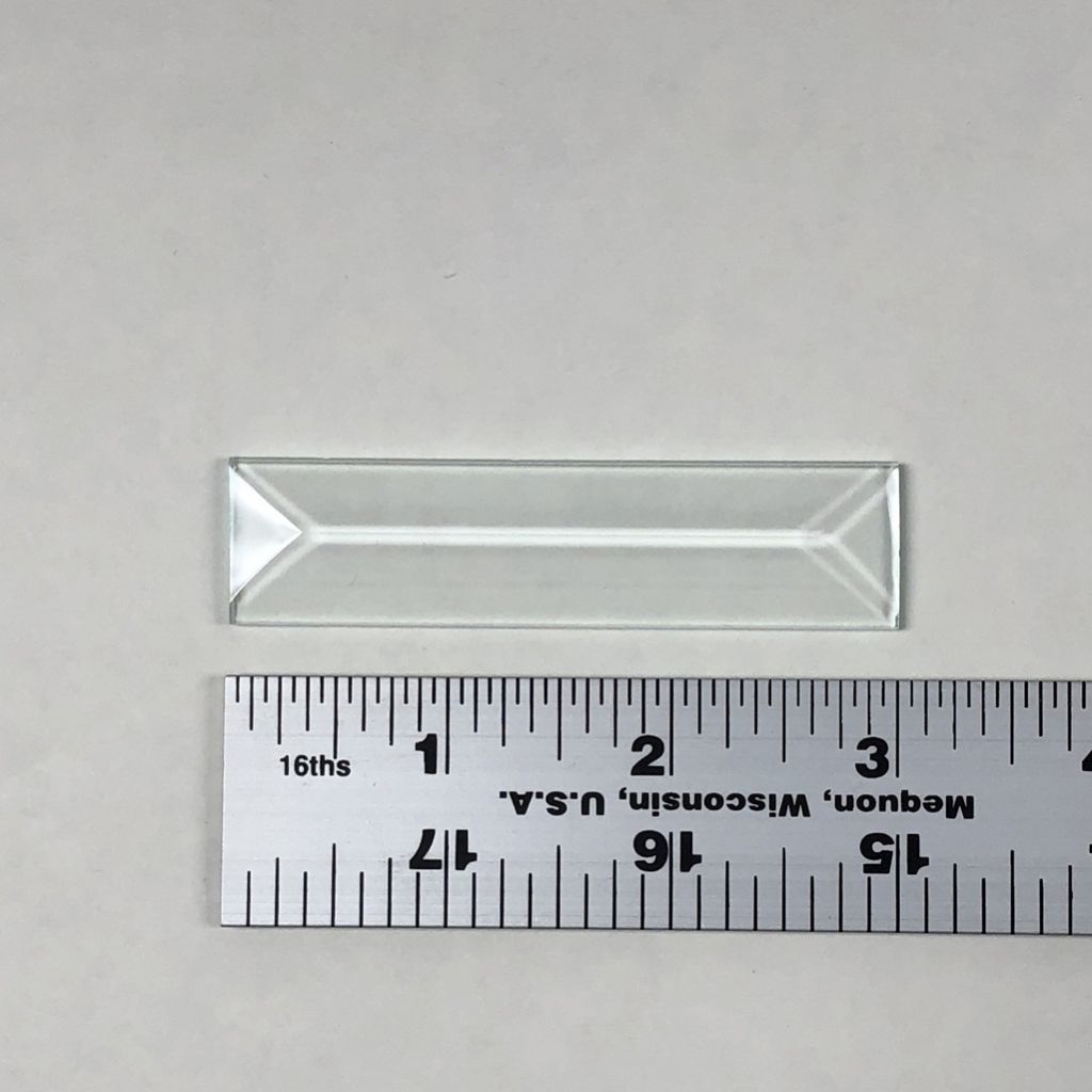 Clear Rectangle Bevel Glass measures 3/4″ x 3″ is top quality and limited stock. It has a 3/8″ bevel edge.