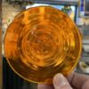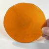 These 100mm (4″) Orange Rondels have an Old World look to them. They are pressed glass and may include small air bubbles and/or glass flow lines that add to the vintage look. The rim has been trimmed but is not as smooth as a handblown version.