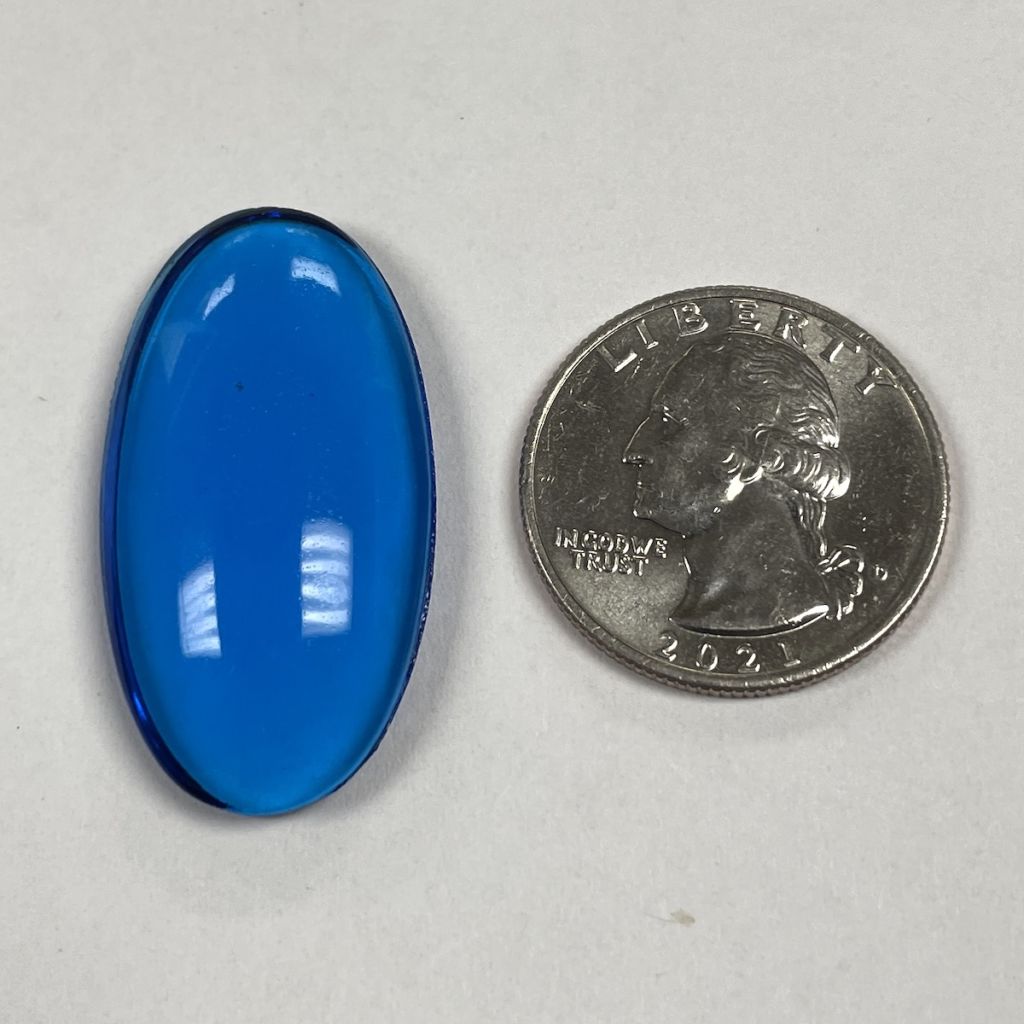 19mm (3/4″) x 36mm (1 3/8″) Oval Smooth Jewel. These jewels are first quality, made in Germany.