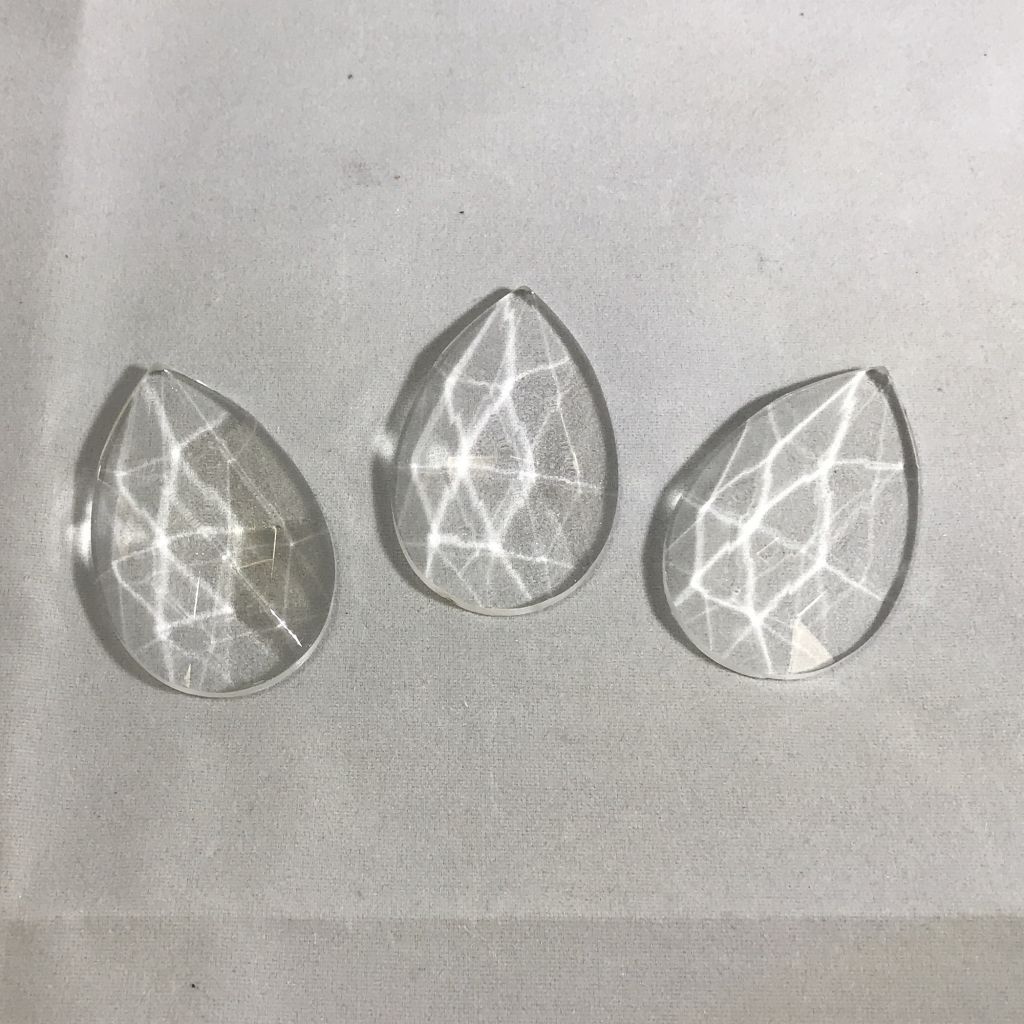 Nice Teardrop Faceted Jewels measure 32 mm x 50 mm (1 3/16″ x 1 15/16″) These jewels are second grade quality and may have slight imperfections. They are not flat on the back. Faceted on both sides.