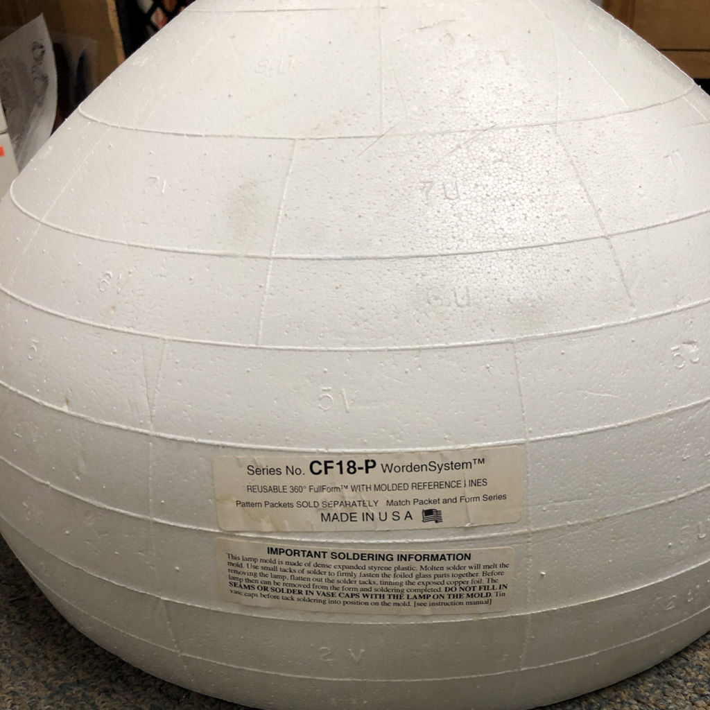 Worden CF18 Full Lamp Form. This New form will make a 18”stained glass lamp. Will work with these patterns: CF18-1K Dragonfly, CF18-2 Dogwood, Cf18-3 Sweetheart Rose, CF18-4 Peony, CF18-5 Victorian Tulip, CF18-6 Art Nouveau, CF18-7K Fruit Border, CF18-8 Baroque, CF18-9 Rose Border, CF18-10 Chew’n Cow, CF18-11 Four Lil’ Pigs, CF18-12 Floral Border, CF18-14 Wild Rose, CF18-15 Impatiens Bouquet, CF18-16 Waterlily, CF18-17 Loon, CF18-18 Worden Chew’n Cow W, CF18-19 Worden Pig, CF18-20 Worden Rooster, CF18-21 Lei Flower, CF8-22 Pansy, CF18-23 Rococo w/ Flower, or CF18-24 Hummingbird. Pattern sets not included.